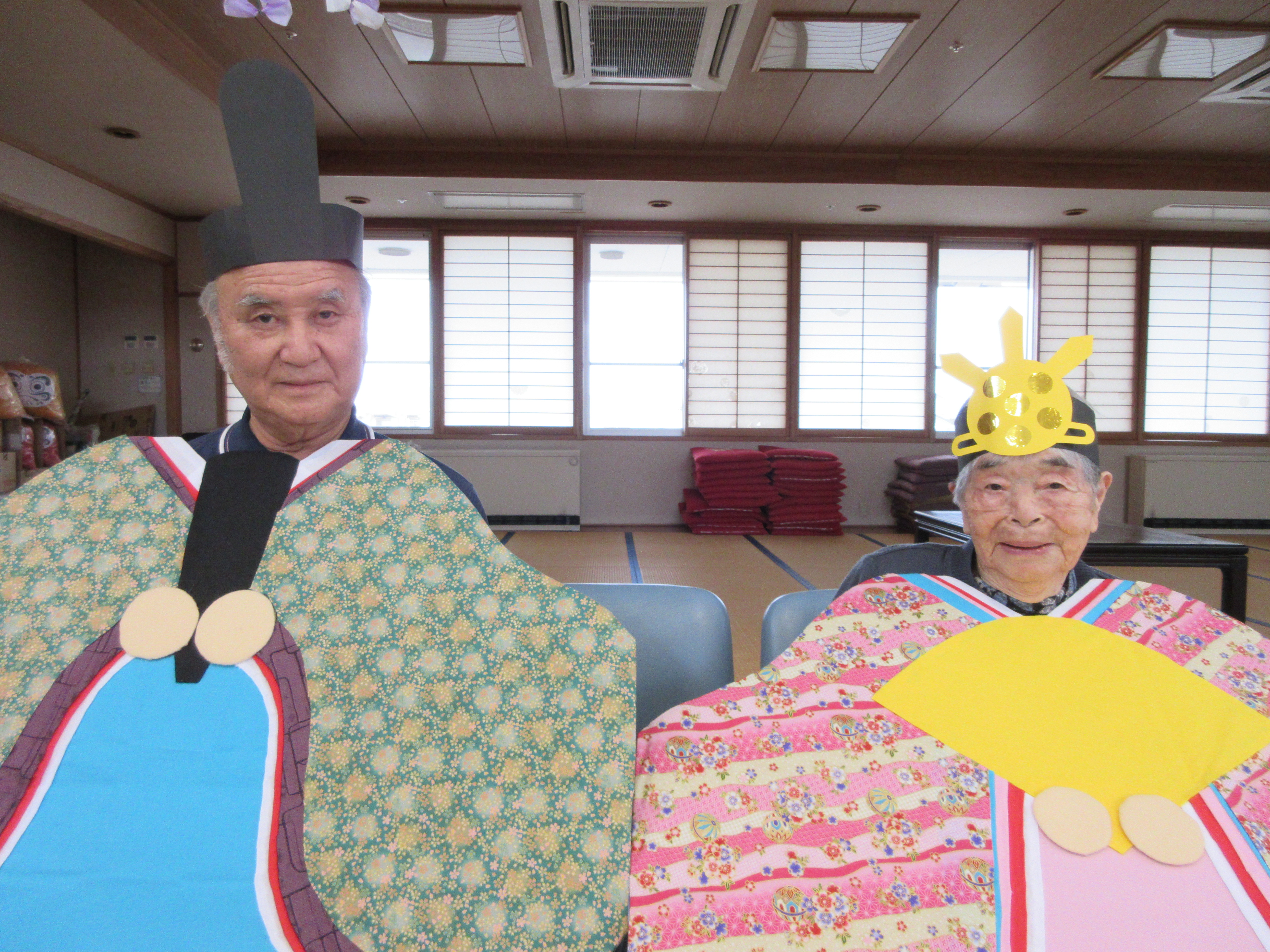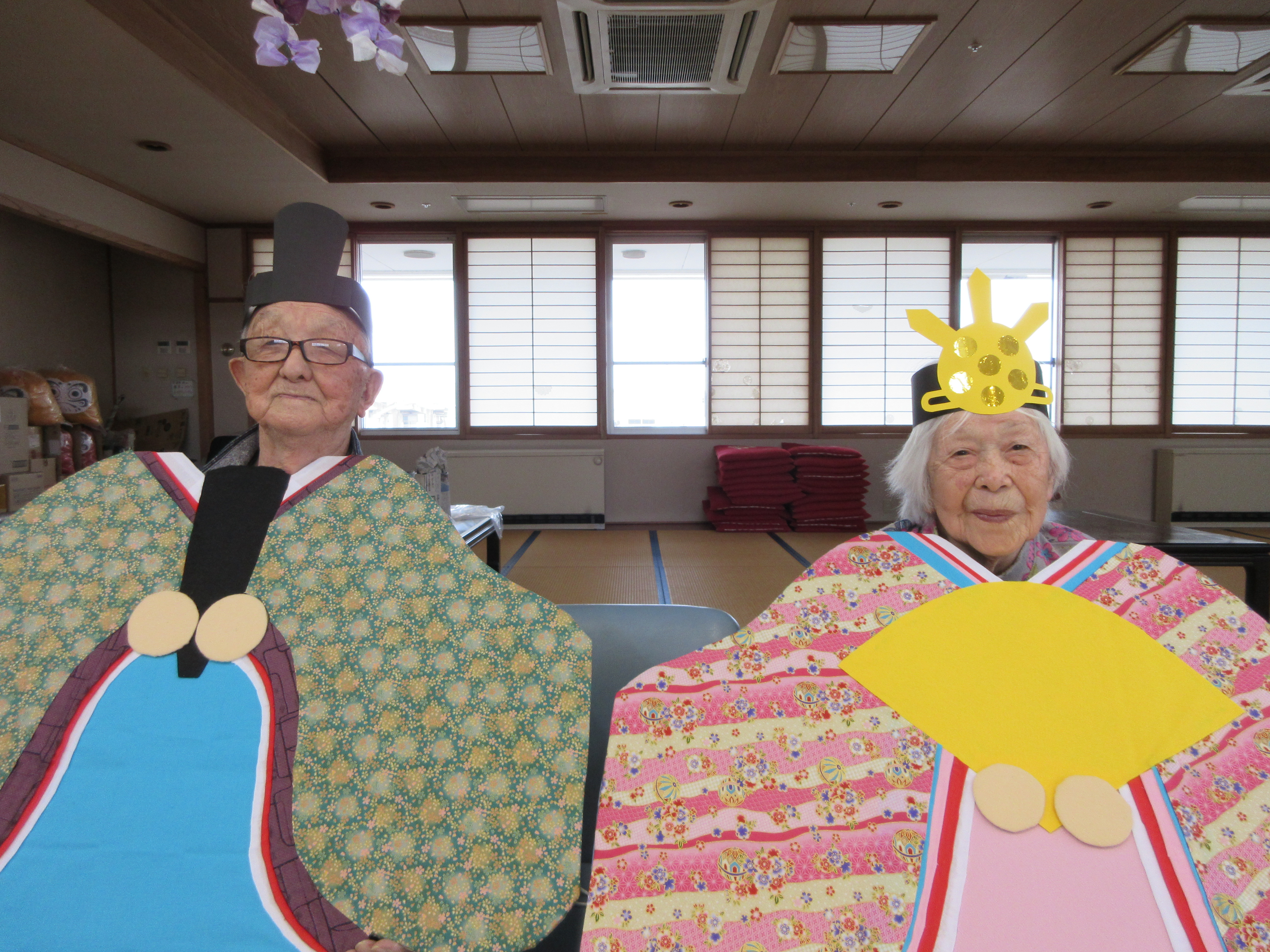 2026.03.10 お知らせ 出来れば毎日ひな祭り~♪ 3月3日、ひなまつりということで デイサービスでは顔はめパネルを 使用した記念撮影会を行いました! 撮影会は毎年恒例になりつつあります! 男性利用者さんが女性利用者さんよりも少ないので、 お内裏様1人につき、お雛様3~7名と 一夫多妻制でご協力していただきました! おやつは職員手作りの桜もちでした♪