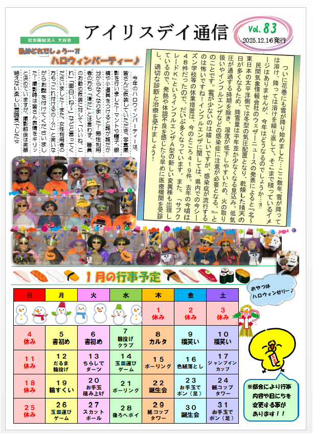 2025.12.27 お知らせ 忘年会+デイ通信☆ 昨日は昼食時に 利用者さんの忘年会がありました! 施設長の挨拶から始まり、 皆さんとジュースで乾杯しました! お一人ずつかんぱ~い☆ そして昼食は 海鮮たっぷりの寄せ鍋でした♪ 白子が美味しそうだな~ 蟹もいいな~ お腹いっぱい食べていただけたようでよかったです☆ 今年も残すところあと数日! 今年も無事に終えることが出来そうです 少し早いですが、1年間ありがとうございました! 来年もどうぞよろしくお願いいたします!